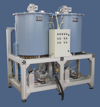 - N° 1 component dosing unit with 270 l tanks for isocyanate and polyol.