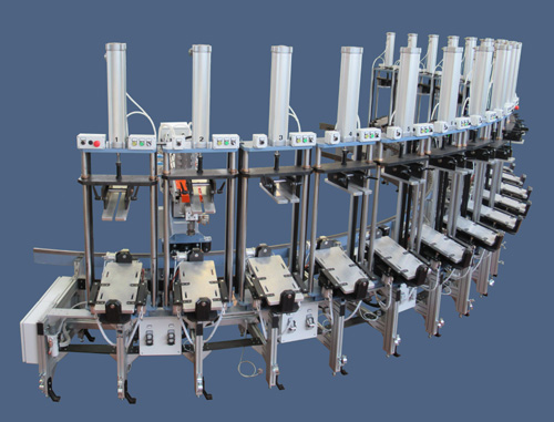 - Infrared lamps: they are used to heat and liquify the adhesive applied on the rubber soles inserted in the mould. The system, with chose of the customer, can include a lamp for each mould or a single lamp translating from mould to mould on which the polyurethane mixture is subsequently casted.
