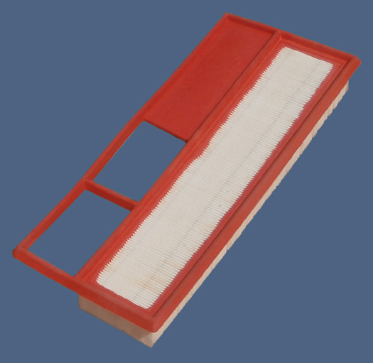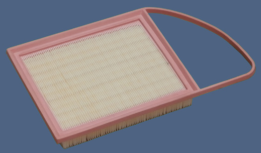 Nell'immagine seguente, uno stampo per la produzione di filtri aria a pannello con forma rettangolare composita, 2 tipi di media filtrante per ogni filtro, 2 elementi; sulla destra un esempio di filtro a pannello con forma rettangolare composita. ![]() ![]() |